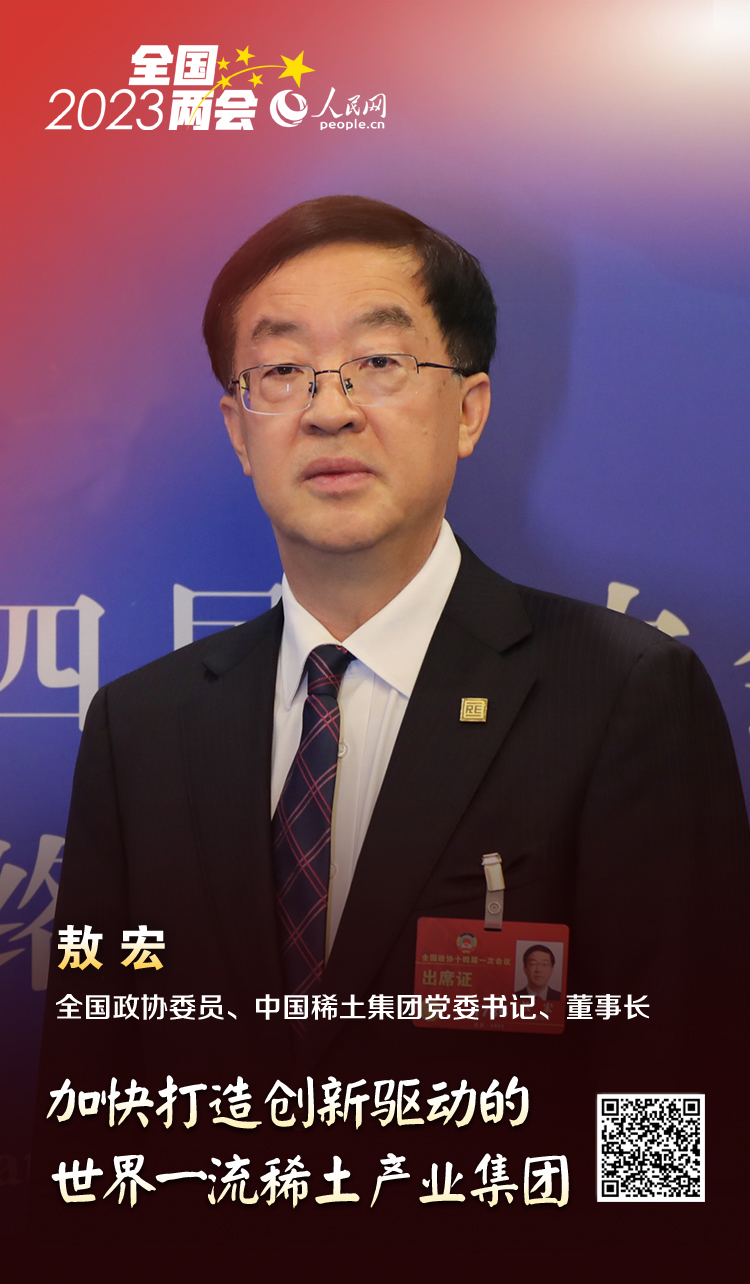 【編者按】2023年是全面貫徹落實黨的二十大精神開局之年。開局關系全局,起步決定后勢。作為扎根贛南革命老區的中央企業,中國稀土集團如何真正把稀土資源優勢轉換為產業優勢、經濟優勢,推動企業科技創新賦能?2023年全國兩會期間,全國政協委員、中國稀土集團黨委書記、董事長敖宏接受了人民網專訪。
