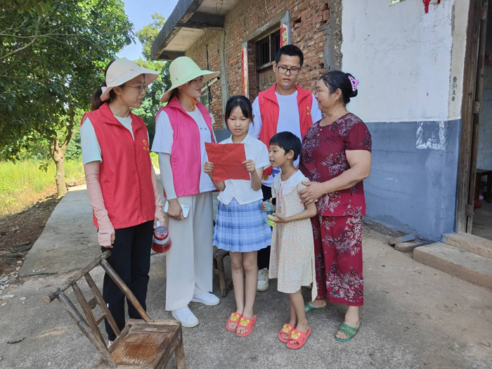張蠑(左一)正在宣傳防溺水知識。受訪者供圖。