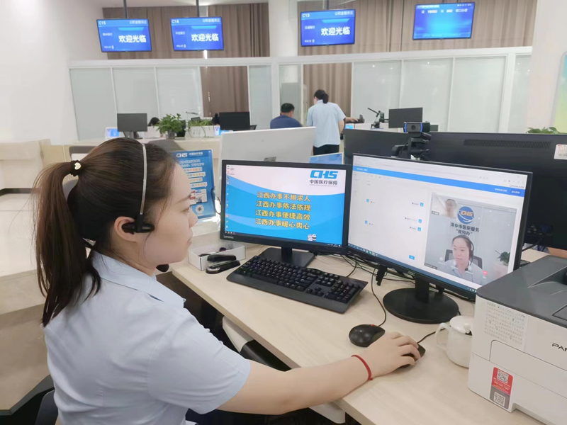 7月初,江西省首個“醫保視頻辦”服務專區在萍鄉市醫保局上線,工作人員正通過視頻“面對面”指導群眾辦理醫保業務。萍鄉市醫保局供圖