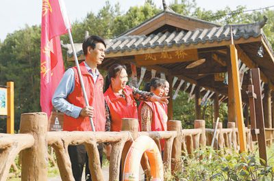 劉風英(左二)在村里山塘河流附近開展防溺水巡查。