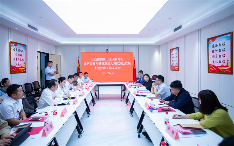 江西省委第七巡回督導組調研宜春市駐粵港澳大灣區流動黨員主題教育工作座談會現場。宜春市駐粵港澳大灣區流動黨員黨委辦公室供圖