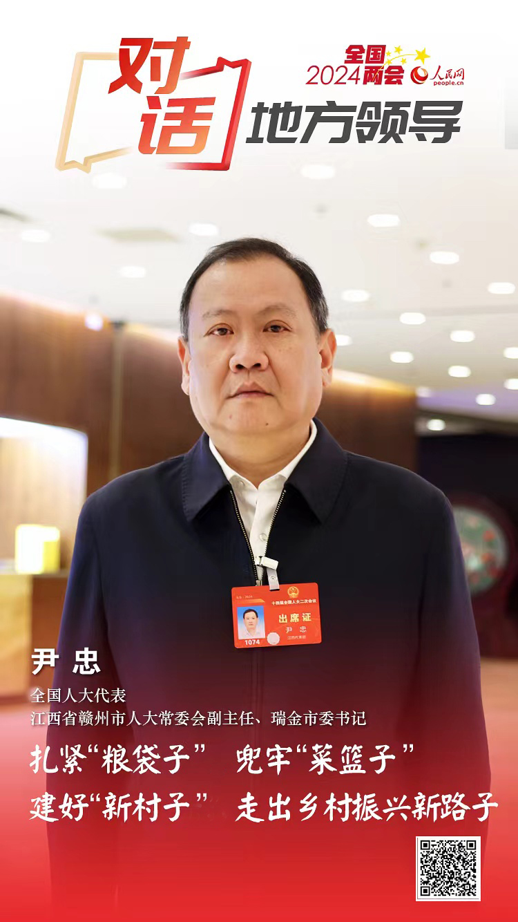 編者按:2024年是新中國成立75周年,是實現“十四五”規劃目標任務的關鍵一年。2024年全國兩會期間,圍繞“鄉村振興”話題,全國人大代表、江西省贛州市人大常委會副主任、瑞金市委書記尹忠接受了人民網記者專訪。