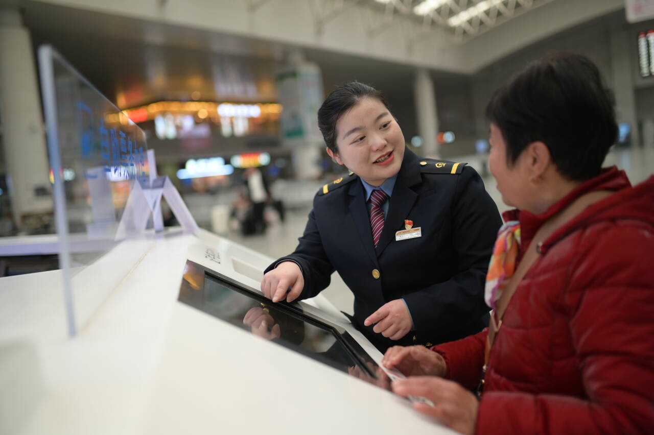 有一次,一個沒趕上車的旅客急匆匆跑到服務臺,讓李軍提供一個最快的改簽方案。因為業務不熟練,李軍手忙腳亂,師傅看到后迅速支援,三下五除二就辦好了改簽手續。