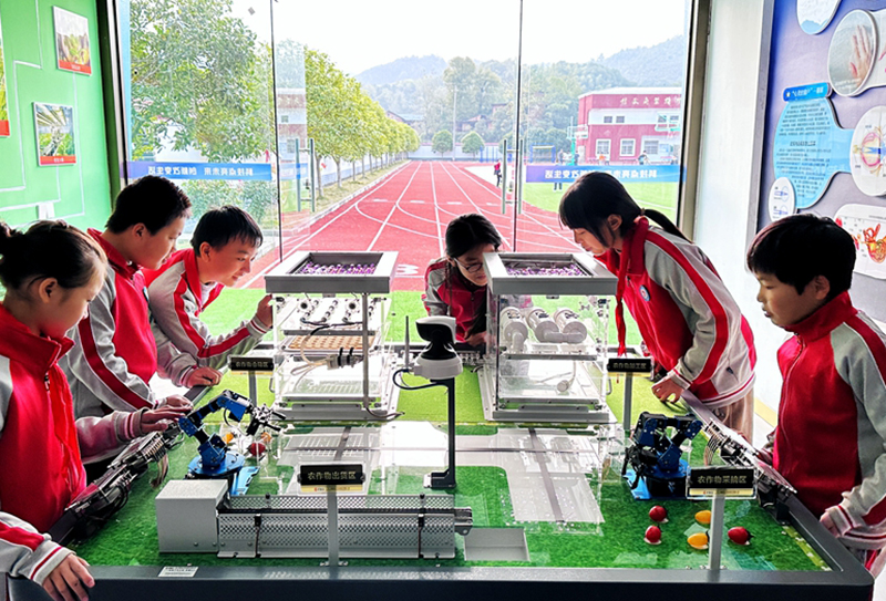 為了讓孩子近距離了解科學,提高實踐應用能力與創造力,學校金種子科創中心應運而生,內設科普展廊、AI虛擬實驗室、智慧農業實驗倉等。