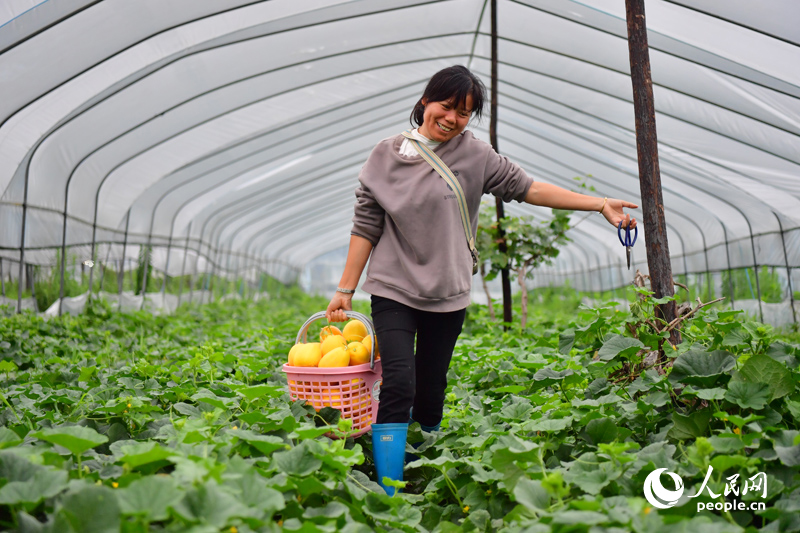 目前,大棚內的西瓜迎來成熟季,周玉成和易飛忙碌著將西瓜上市。人民網記者 時雨攝