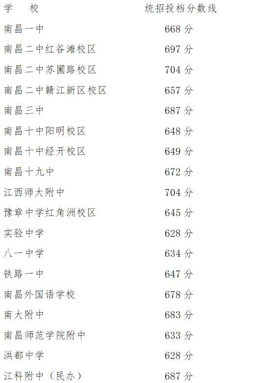 南昌公布城區高中階段招生各批次統招最低控制分數線