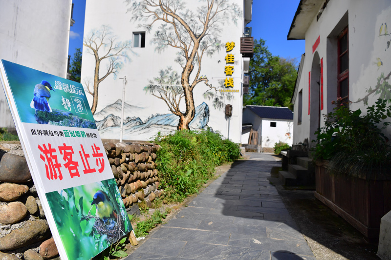 為了守護好藍冠噪鹛這張石門村的生態名片,石門村護鳥志愿隊已經從最初的2人增長至8人?!按謇镏T多墻繪、裝飾都以藍黃相間的小鳥為主題,還建設了藍冠噪鹛鳥類博物館,普及護鳥知識和政策?!痹谧o鳥志愿隊的帶領下,村民們都成了藍冠噪鹛的守護者。