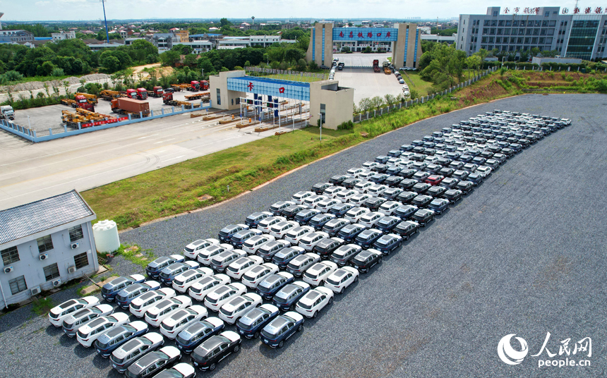 人民網南昌7月20日電 (記者毛思遠)近日,位于江西省南昌市南昌縣的南昌國際陸港貨場,貨運班列、集裝箱運輸車裝卸繁忙,準備出口汽車和各種貨柜整齊排列。