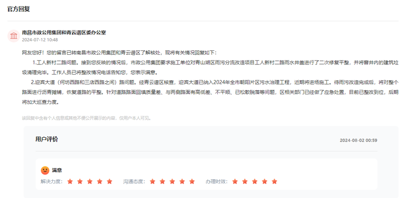 有回音丨路面不平、井蓋松動 網友反映南昌雨污分流施工問題獲回復