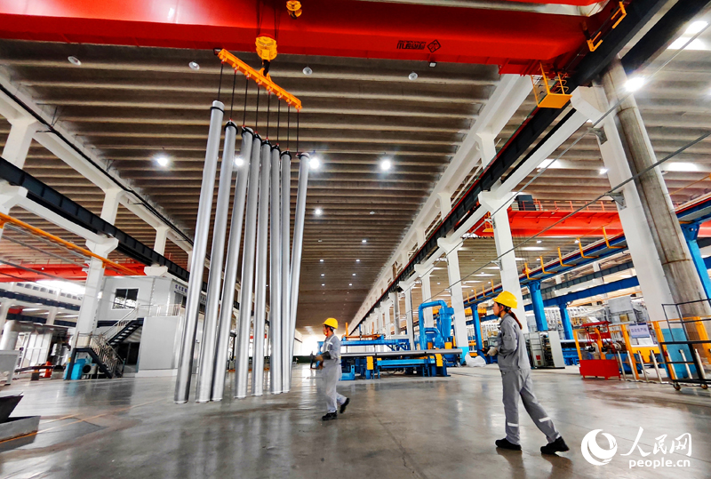 位于撫州市東鄉區的江西愛索輕合金技術有限公司,工人在加工鋁棒。人民網 朱海鵬攝