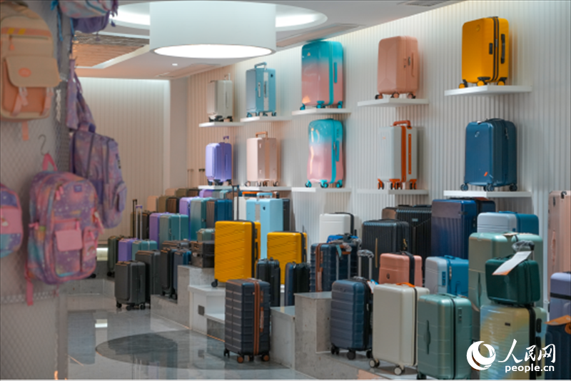 展廳內擺放著一款款時尚的箱包。人民網 涂詩軒攝
