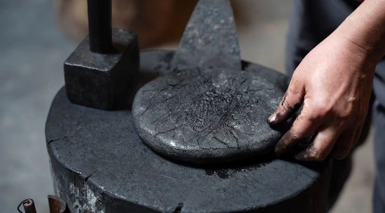 點煙、刮煙、和料……墨墩抹上些油,熱烘烘的墨餅“啪”地摔上去,8斤重的鐵錘砸得“砰砰”響。