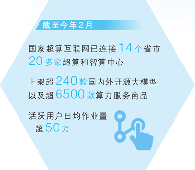 國家高性能計算機工程技術研究中心副主任曹振南介紹,讓算力資源更好服務產業創新,國家超算互聯網平臺實現了一系列技術和模式突破。截至今年2月,超算互聯網已連接14個省市20多家超算和智算中心,并上架超過240款國內外開源大模型以及超過6500款算力服務商品,活躍用戶日均作業量超過50萬。