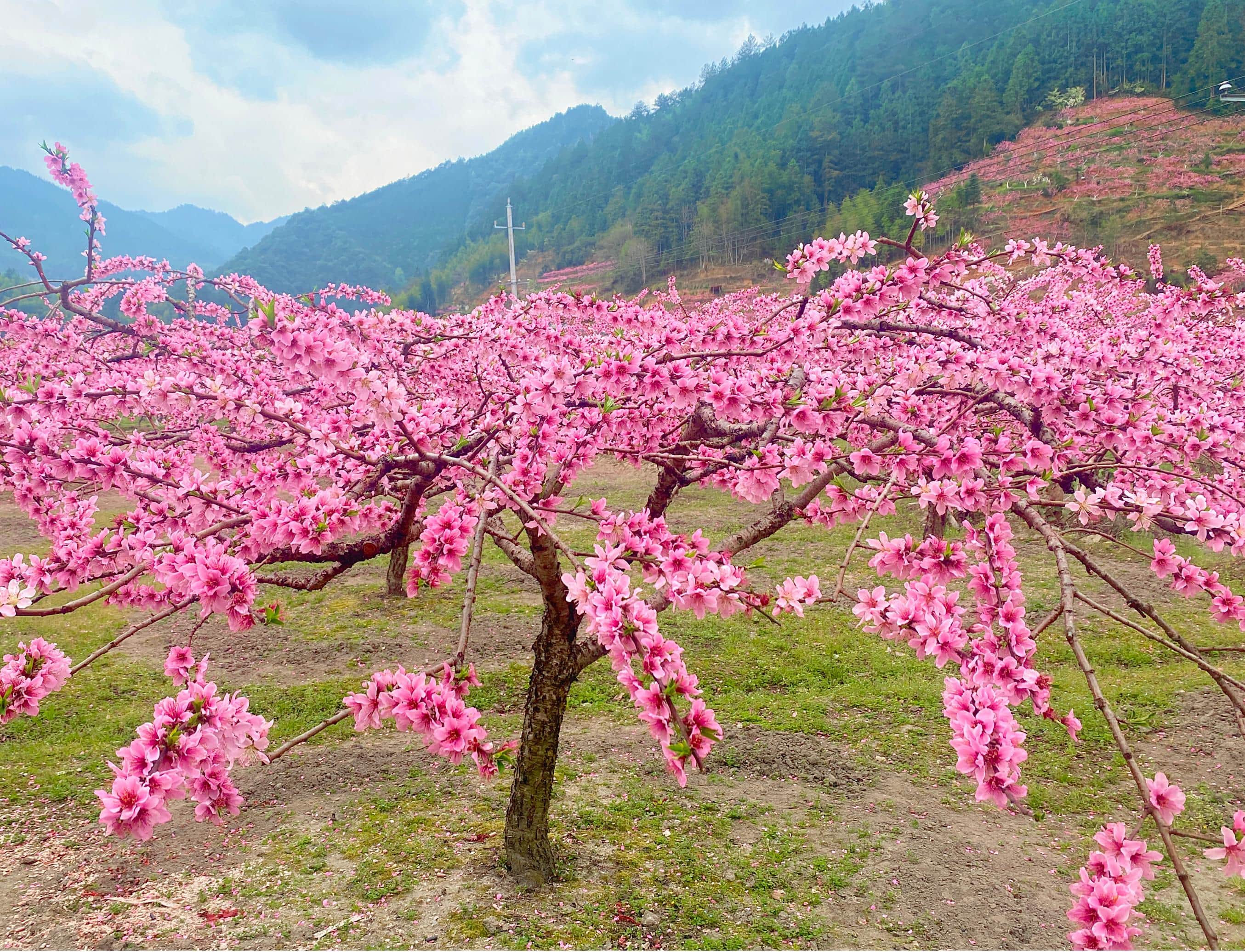 3月下旬,遂川縣營盤圩鄉禾坑村數百畝黃桃樹迎來開花期。受訪者供圖