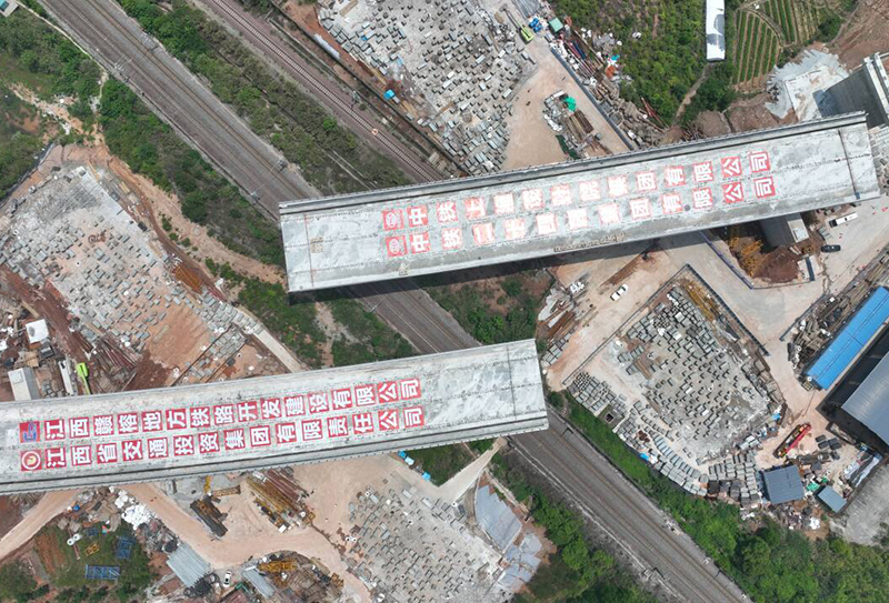 江西交投梨東改擴建項目立交橋以“毫米級”誤差精準成功完成轉體。徐鵬馳攝