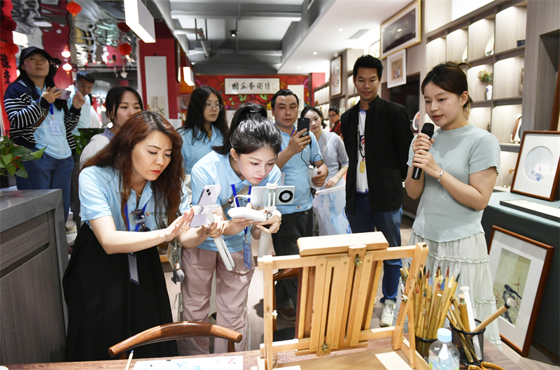 采訪團在萬壽宮歷史文化街區探訪非遺市集。王祺攝