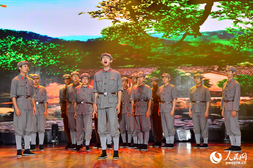 江西師范大學的師生們激情演繹戲劇《紅土魂|十七棵松》。人民網記者 時雨攝