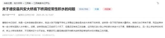 關于反映德安縣共安大道鐵路橋涵經常積水、影響通行的問題。經德安縣委核辦,已對共安大道鐵路橋涵開展積水點專項整治,通過新建雨水溝、鋪設雨污管道、抬升路面等措施,提升排水系統效能。2025年5月22日,該鐵路橋涵積水問題已整改完畢,行人車輛可正常通行。