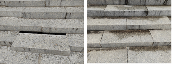 臺階修復前后對比。