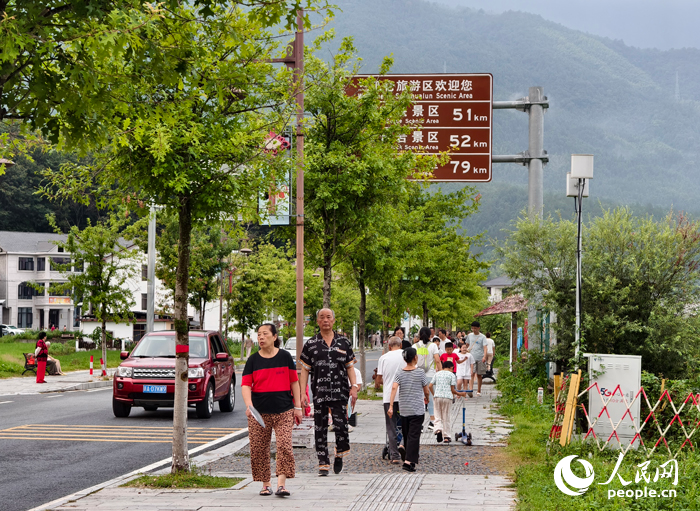 靖安縣中源鄉“避暑小鎮”,傍晚時分,游客們在戶外散步。人民網記者 時雨攝