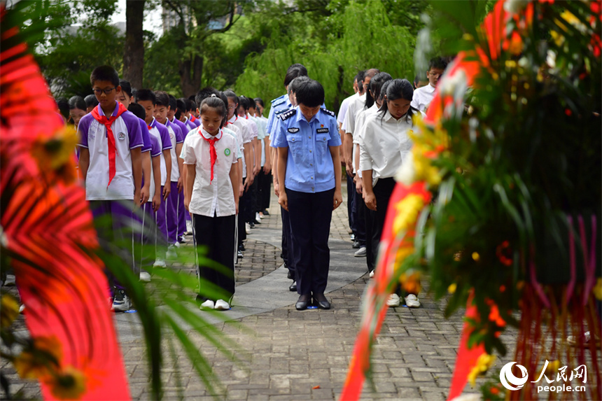 社會各界人士在南昌新四軍軍部舊址陳列館舉行“勿忘國恥 珍愛和平”主題紀念活動。人民網記者 時雨攝