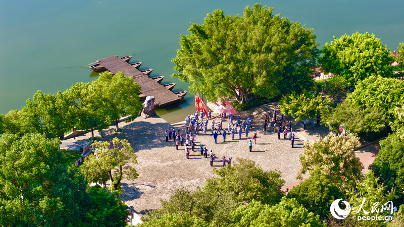 許多游客來到江西省于都縣中央紅軍長征出發地紀念園內的“長征渡口”參觀游覽。人民網 朱海鵬攝
