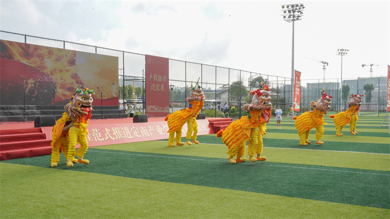 人民網定南9月22日電 (朱海鵬)9月22日上午,贛南師范大學定南產業學院2025級新生開學典禮暨定南校區啟用儀式在江西定南(國家)足球訓練中心7號球場內舉行?;顒蝇F場,部分學生代表表演了青春洋溢的歌曲串燒、大合唱,定南傳統“瑞獅”表演精彩亮相,展現出濃厚的地方文化特色與蓬勃的青春氣息。
