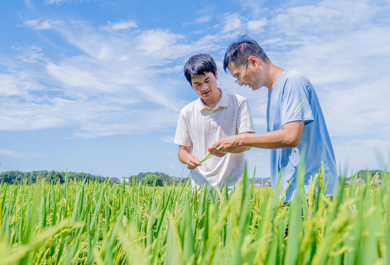幫帶導師在中宋村水稻田畈上向其幫帶的新錄用公務員介紹晚稻種植情況。