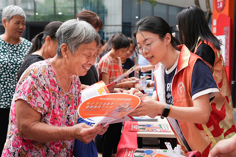 2025年10月17日,在江西省撫州市臨川區撫臨社區,臨川區金融服務中心工作人員為來往居民講解非法集資的特點及危害。