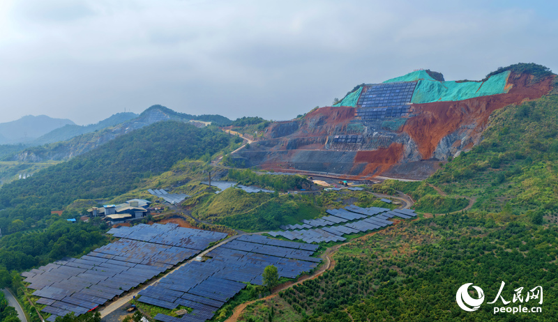 金石山南面鋪設了光伏板,山坡正在進行“復綠”。人民網朱海鵬攝