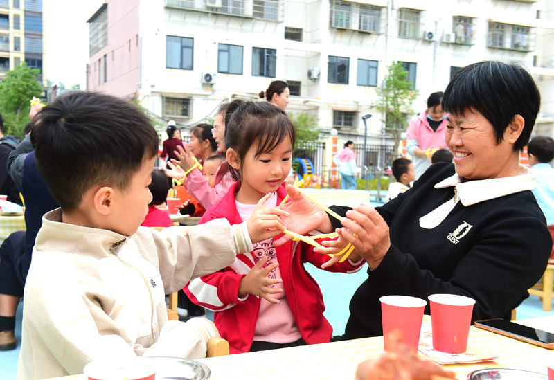 10月28日,江西省贛州市會昌縣第六幼兒園開展“返老還童·共度夕陽”重陽節主題活動,小朋友和長輩們一起玩翻花繩、套圈圈、釣釣樂、趕雞入籠等趣味游戲,在歡樂的親子互動中增進親情,引導孩子們懂得尊老敬老、傳承孝道。(呂春華攝影報道)