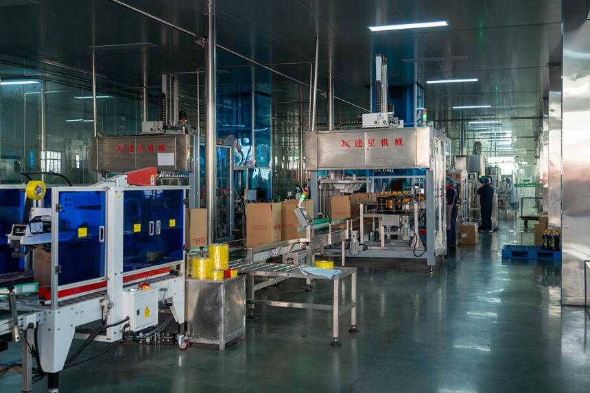 企業生產車間內,各類油脂產品正有條不紊地開展打包作業。人民網 龍楚良攝